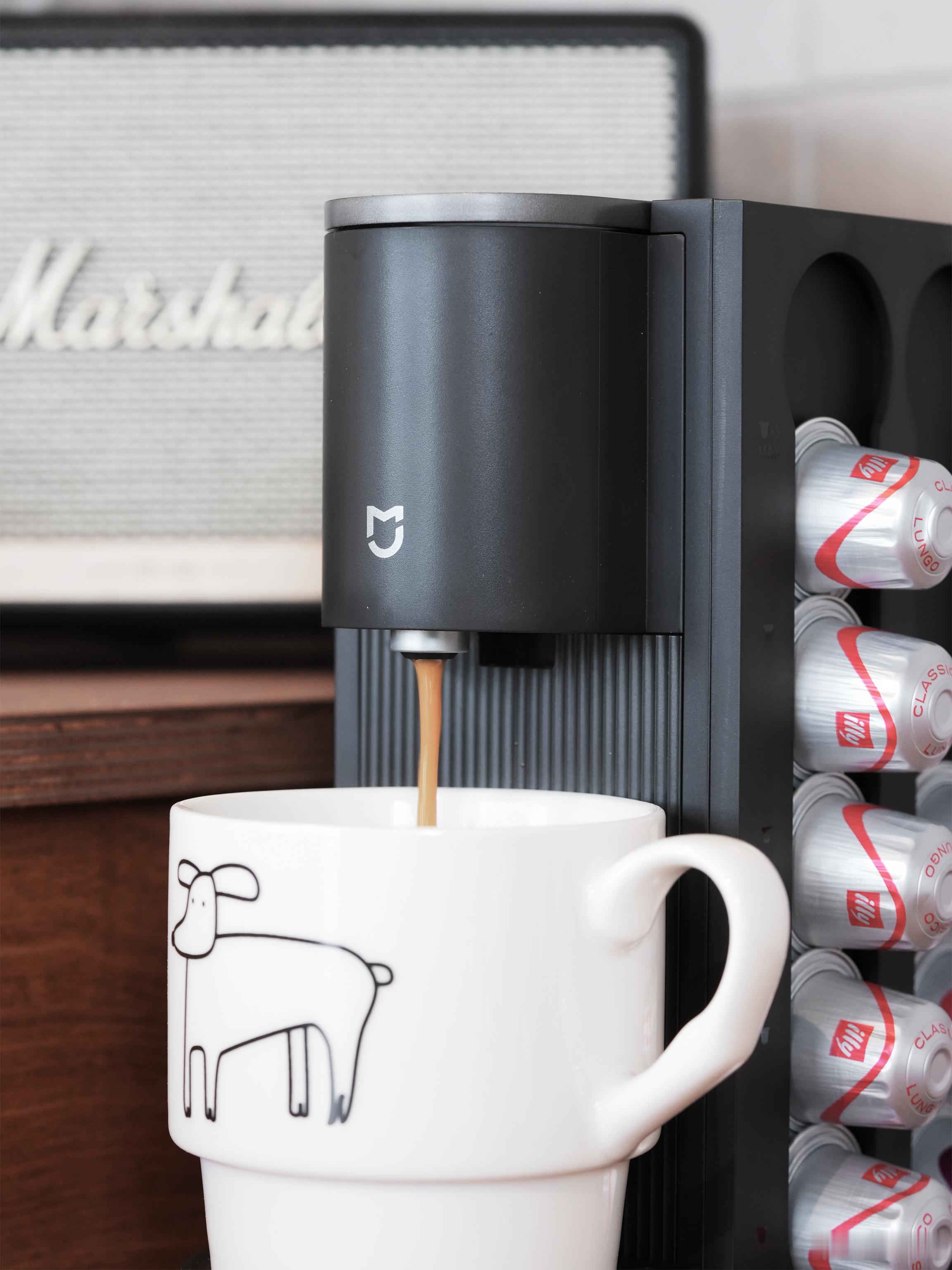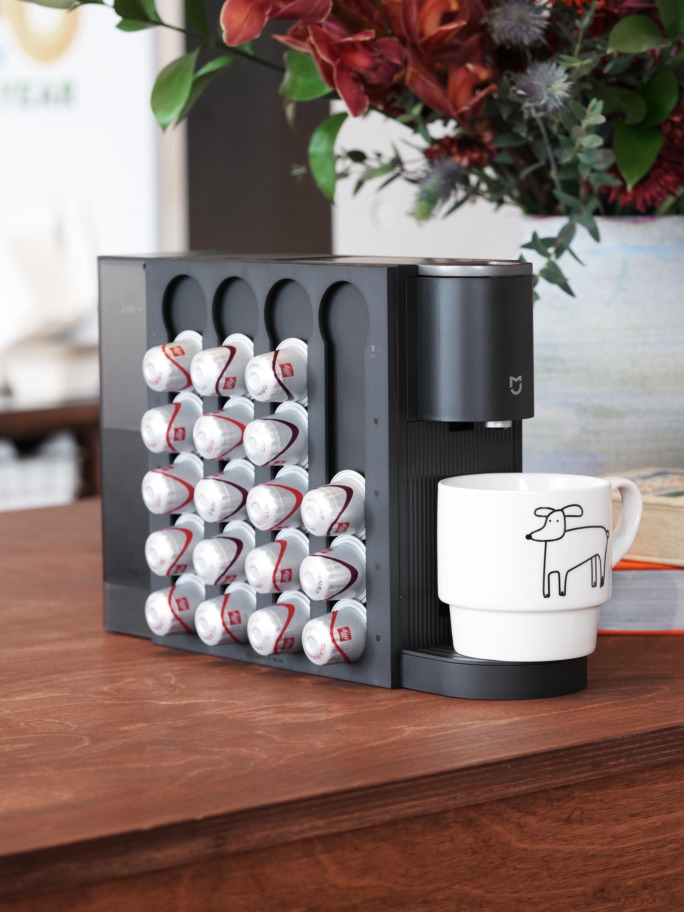 米家也是有咖啡机的!米家胶囊咖啡机S1,整机非常小巧,我最喜欢的是它侧面就有磁吸的胶囊挂架,可以挂20个胶囊,方便也简约好看只需要25秒就能喝到一杯咖啡,早晨起床或者出门前顺手一按,想喝就喝了。外面的咖啡多少钱一杯你们也知道,该省省该花花。而且米家的咖啡机本身价格也很香,500块以内就搞定了,性价比非常高