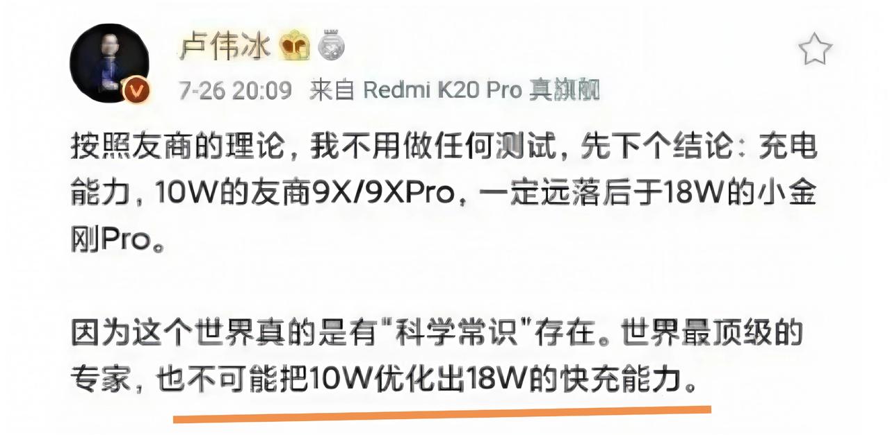 9000mAh电池的红米要硬刚10000mAh电池的荣耀? 既然要硬刚,我建议双方都要有人在现场监督,对比的手机都应该是正常售卖的零售机而不是特调机,续航测试规则也要双方共同制定,这样才公平。 请注意,以下这三张图都是卢总发表的动态,并非我P图。以上发文实事求是,客观公正。