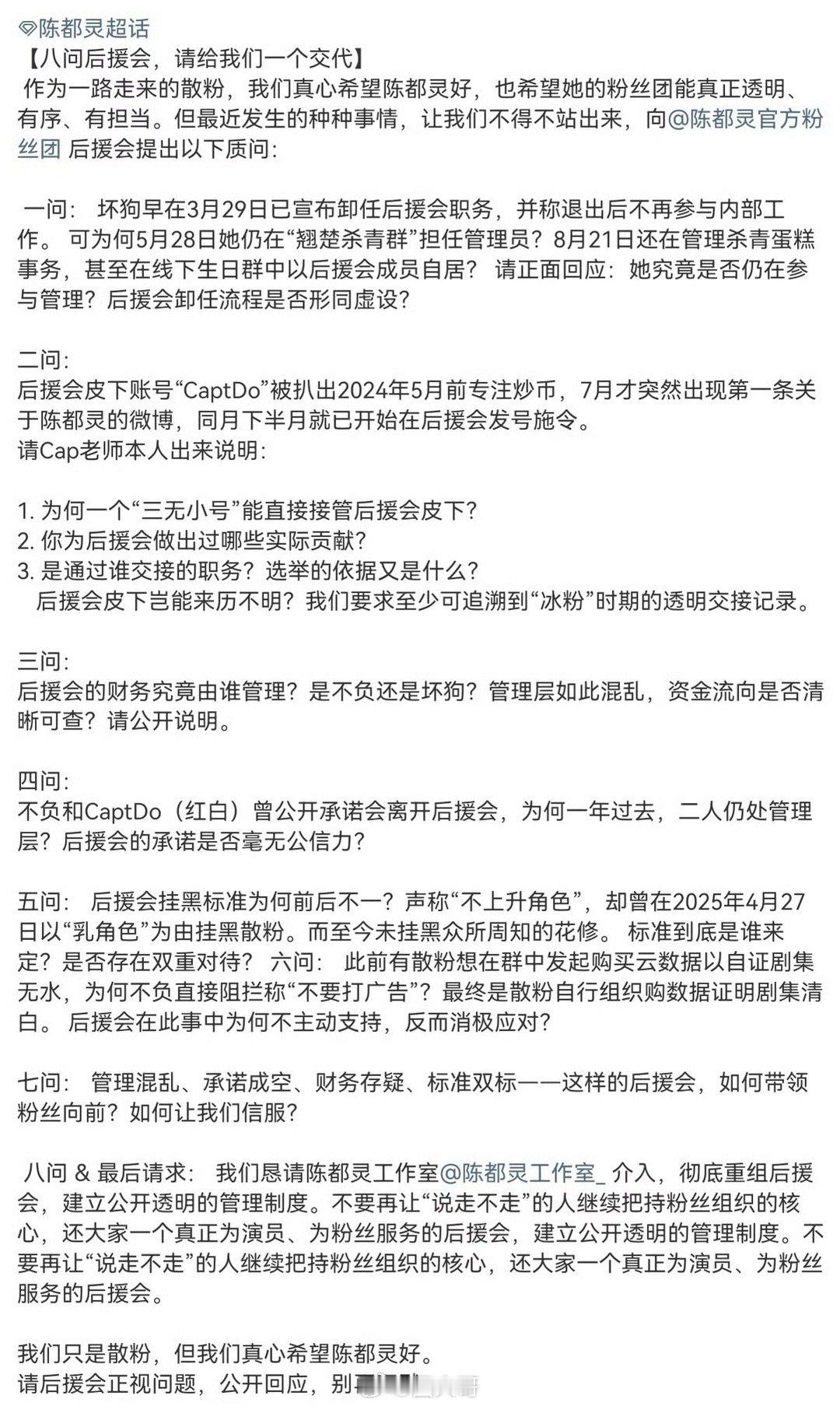 陈都灵后援会将在新剧开机后重组陈都灵工作室给粉丝的回信很是用心了,看得出来陈都灵有在认真的听着粉丝的想法,后援会会在新剧开机后重组,这下小铃铛们悬着的心可以放下来了,粉丝也该明白嘟嘟的心意,侯燥新剧开机吧!陈都灵工作室给粉丝的回信