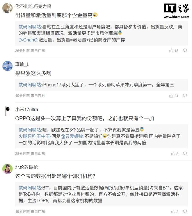 值得注意的是,OPPO目前激活量中包含了realme真我的数据,博主表示“欧加现在3个品牌一起了,不算真我就是第五”。