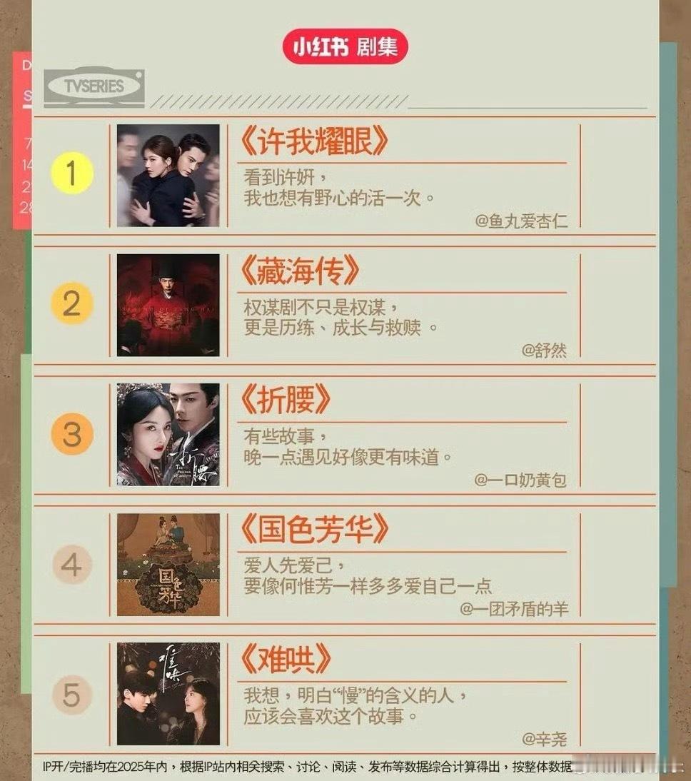 🍠年度热门剧集榜单,赵露思《许我耀眼》依旧登顶,赵露思许妍入选年度十大角色榜,