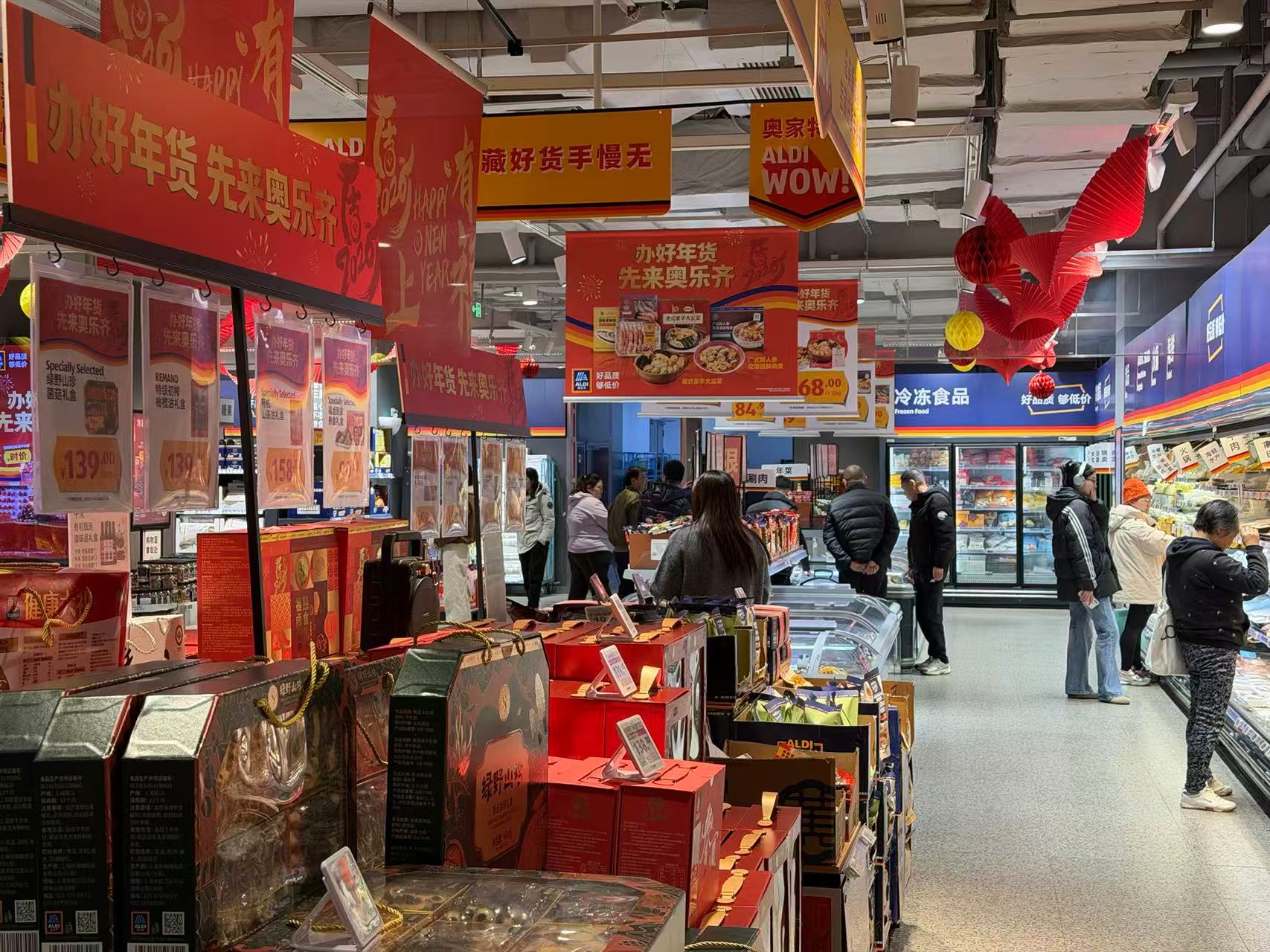 全球连锁精选平价超市ALDI奥乐齐则应季推出了上百款高质价比的年货,囊括时令鲜果、品质年礼、本土年味等丰富组合,以更好的品质和更实惠的价格支持消费者畅买新春年货好物。除了年菜、年礼等节庆好物外,还包括春节喜庆氛围装饰、马年春节限定包装产品等。门店内,这些产品整齐码在货架上,充满浓浓年味。