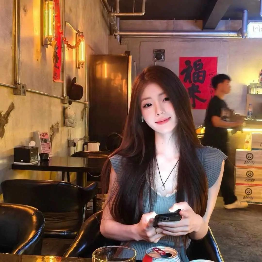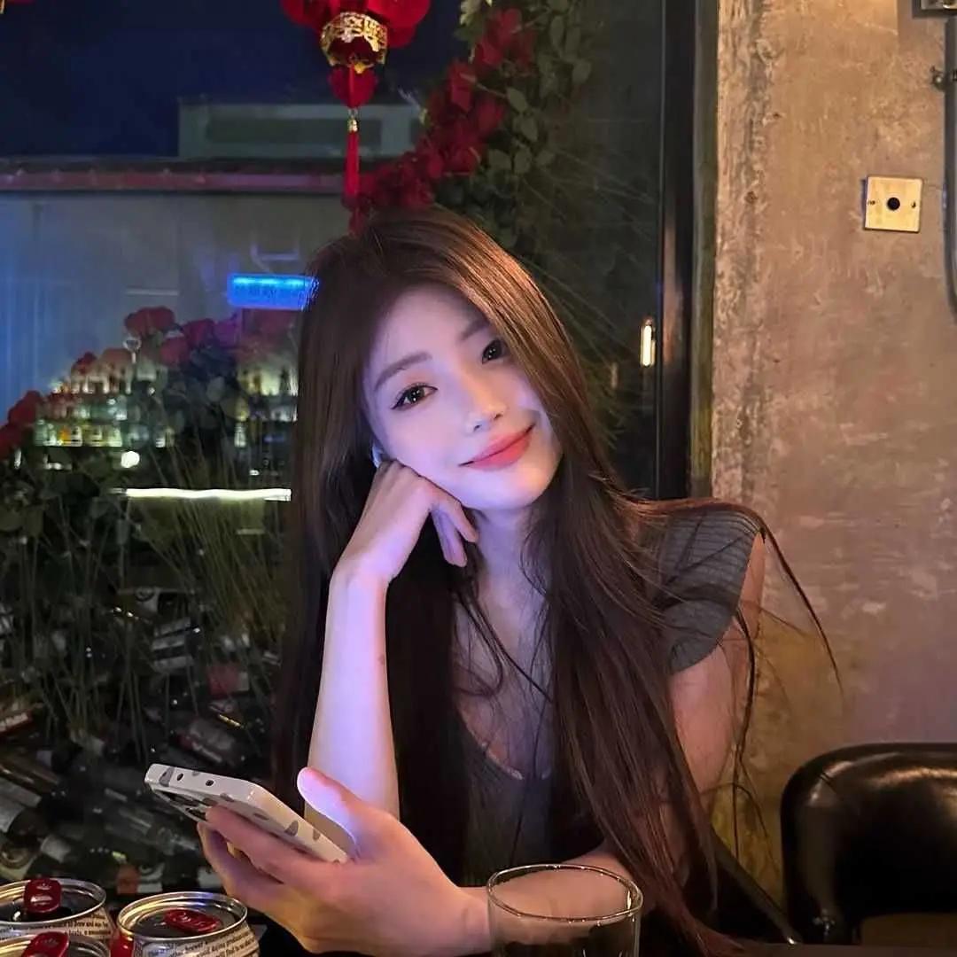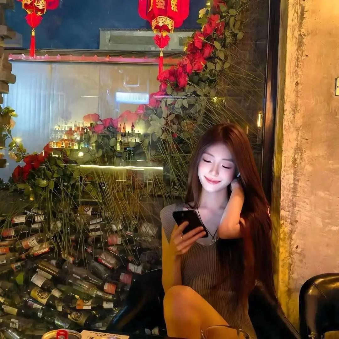 夜晚的酒吧里,微笑的少女与手机相伴,散发着温暖的光芒。御姐 高跟鞋 大长腿