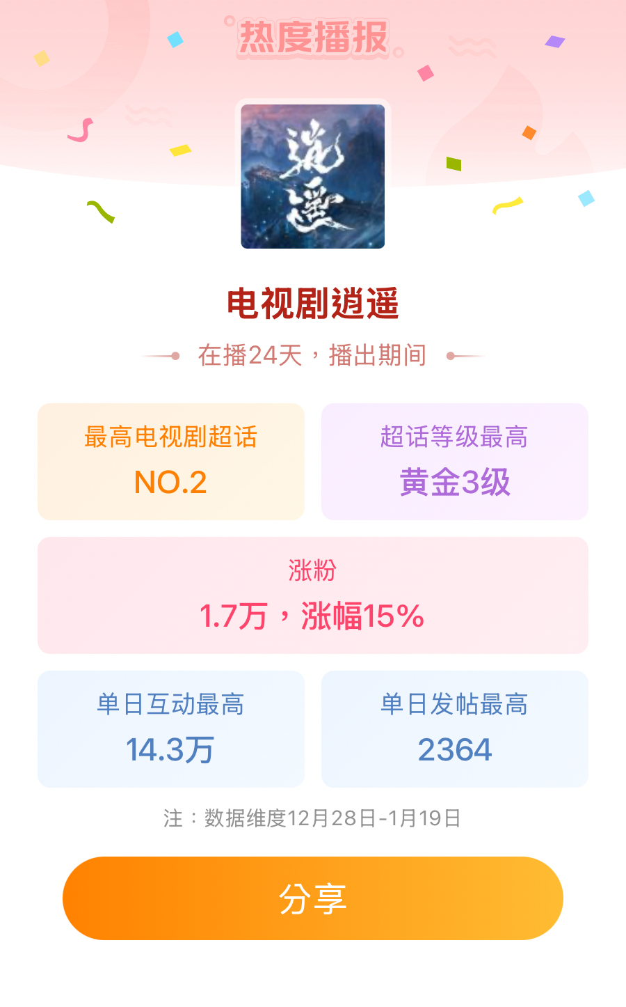 电视剧逍遥超话热播播报 以一个一天三集11天送走的电视剧这个成绩值得骄傲就是棒谭