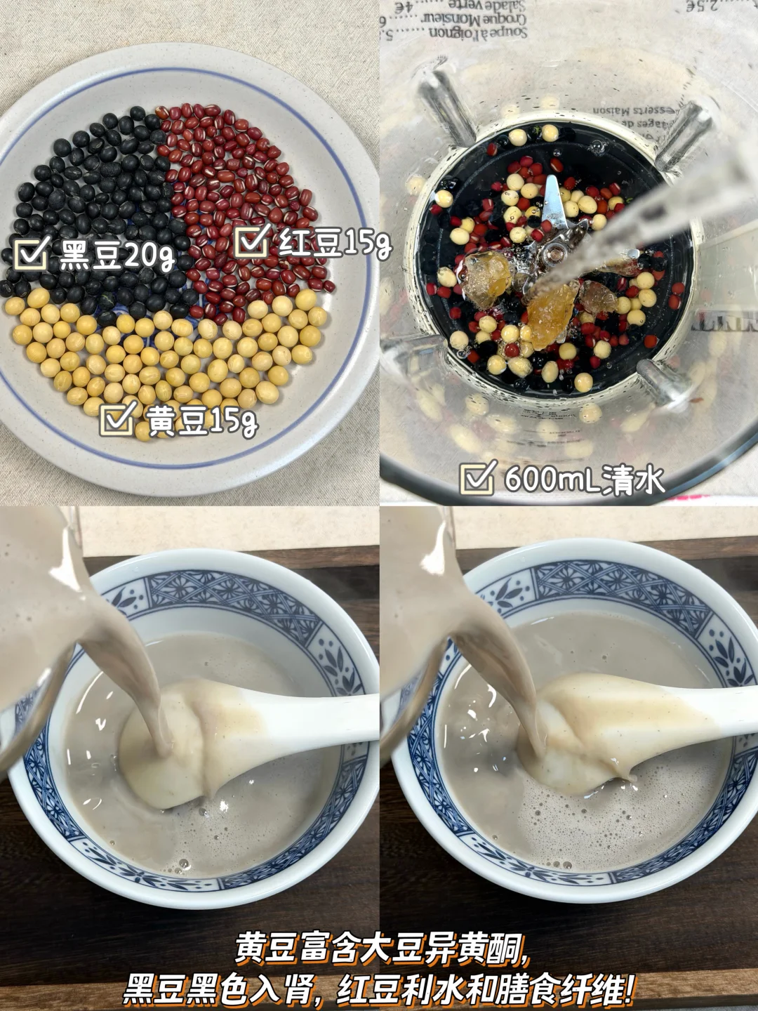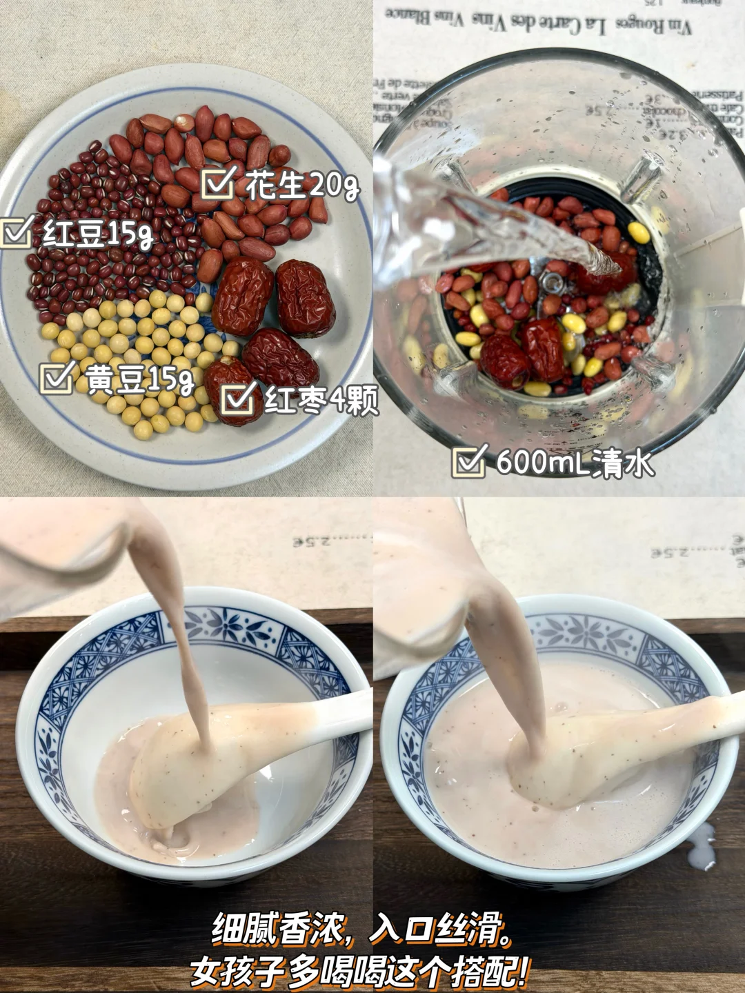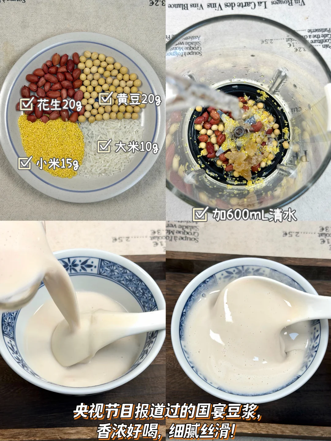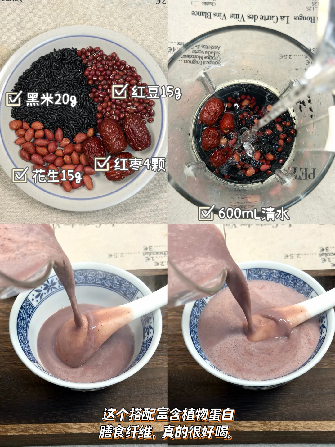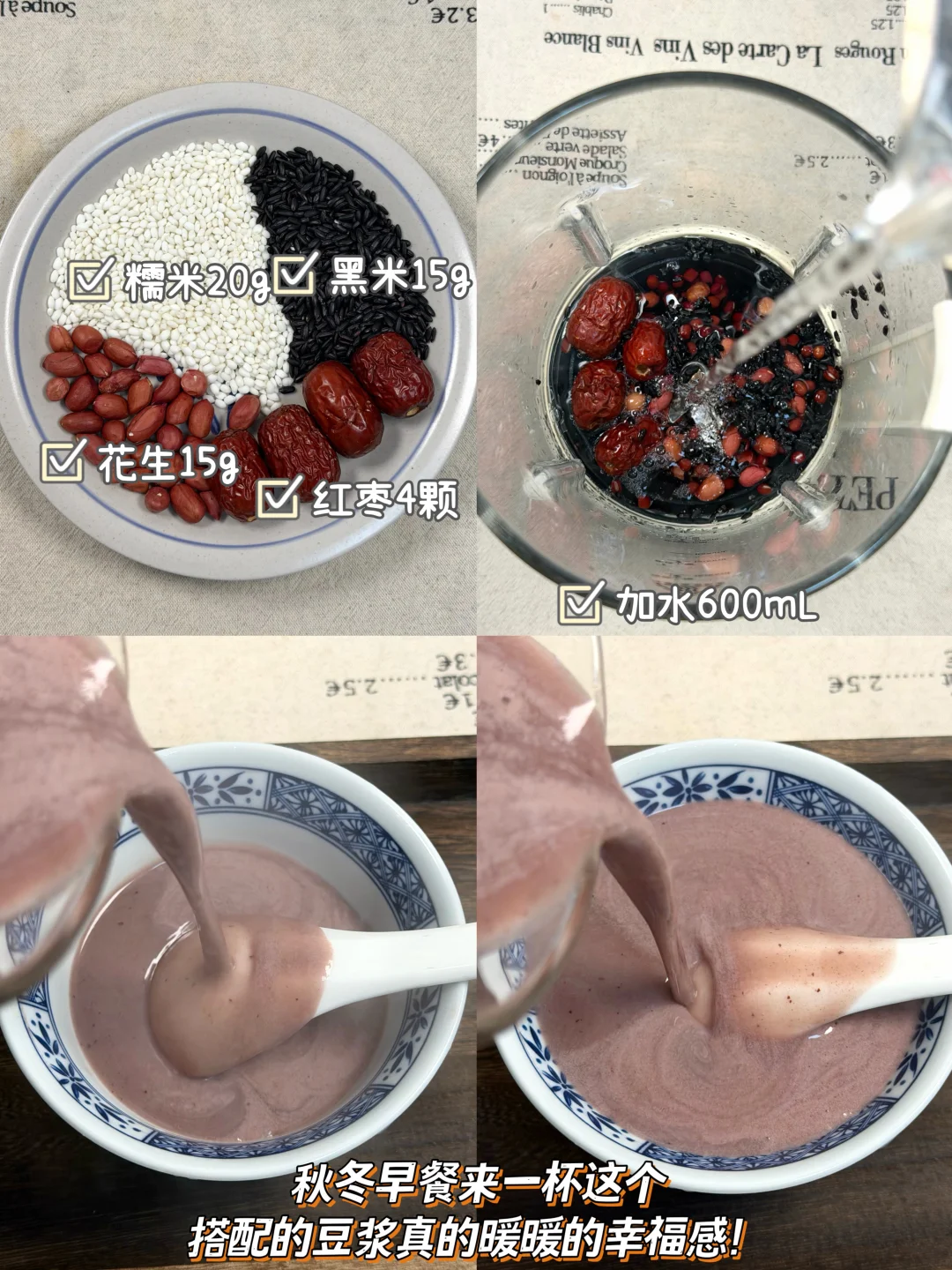 做法真的很简单,食材倒入破壁机中,豆浆模式即可,每款加600mL清水。