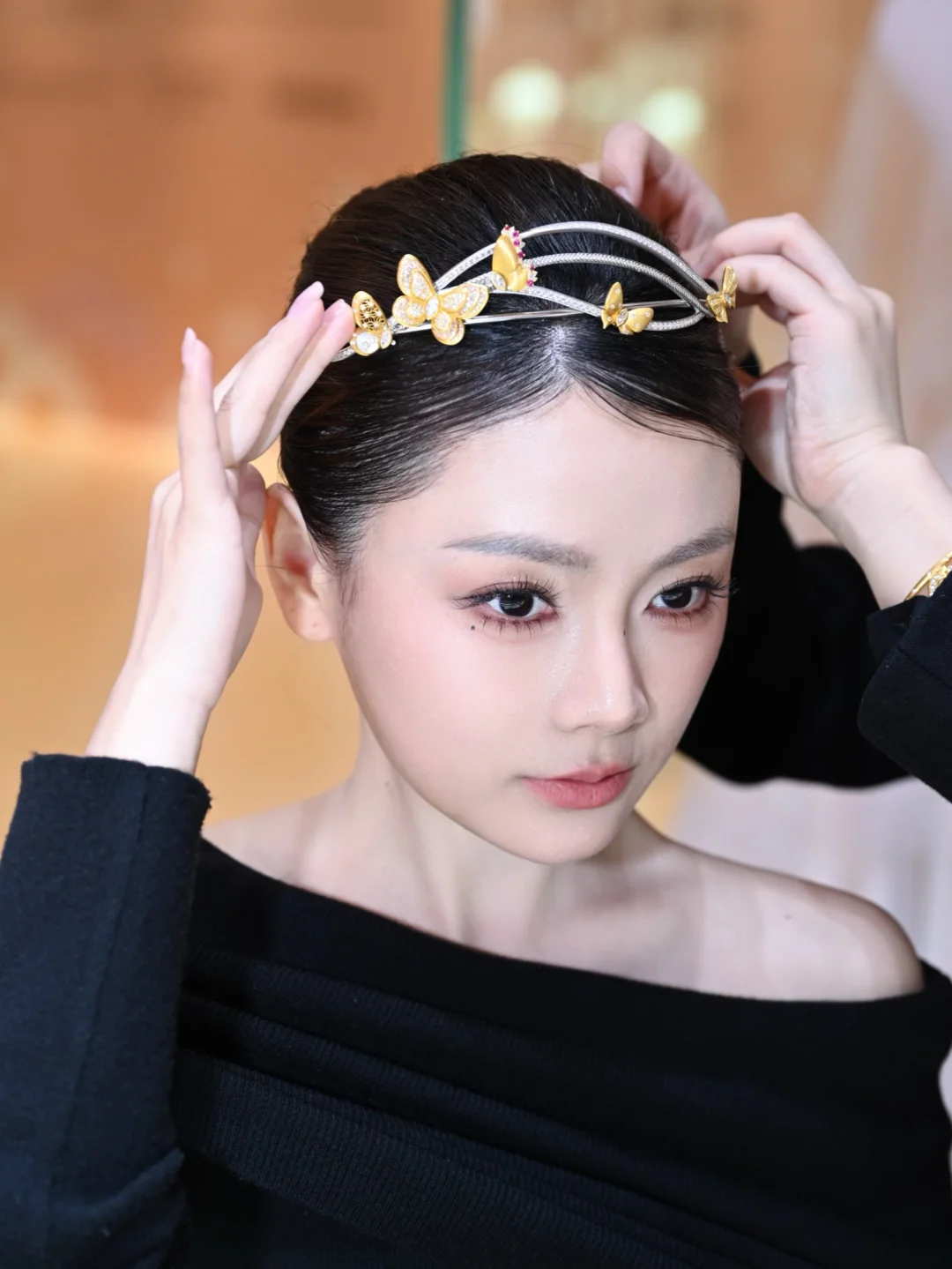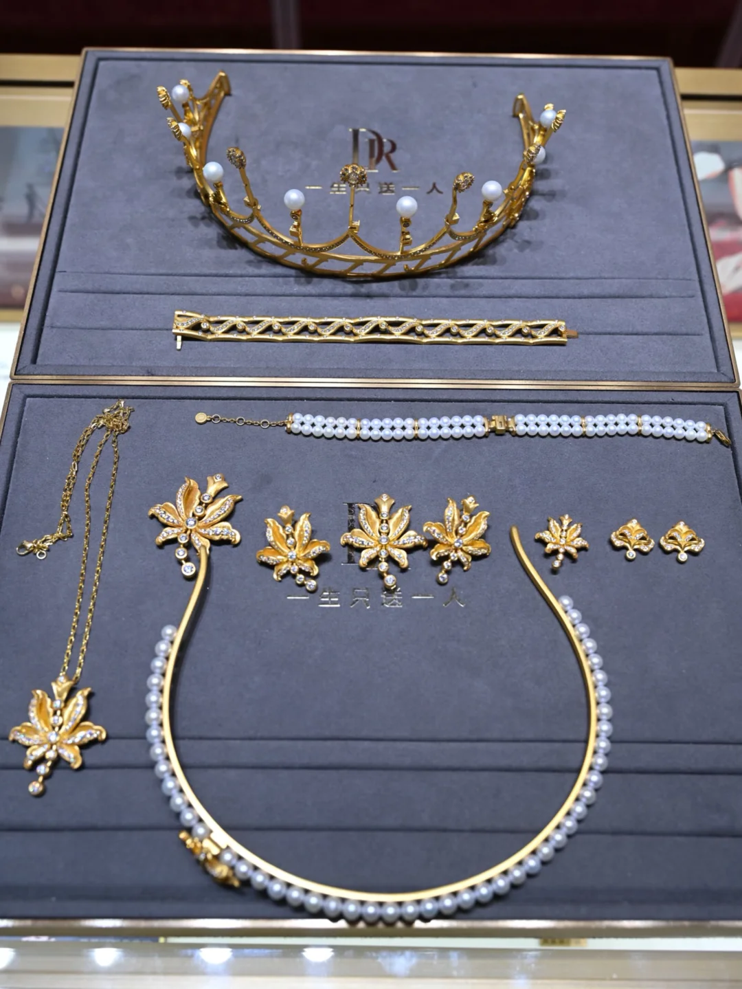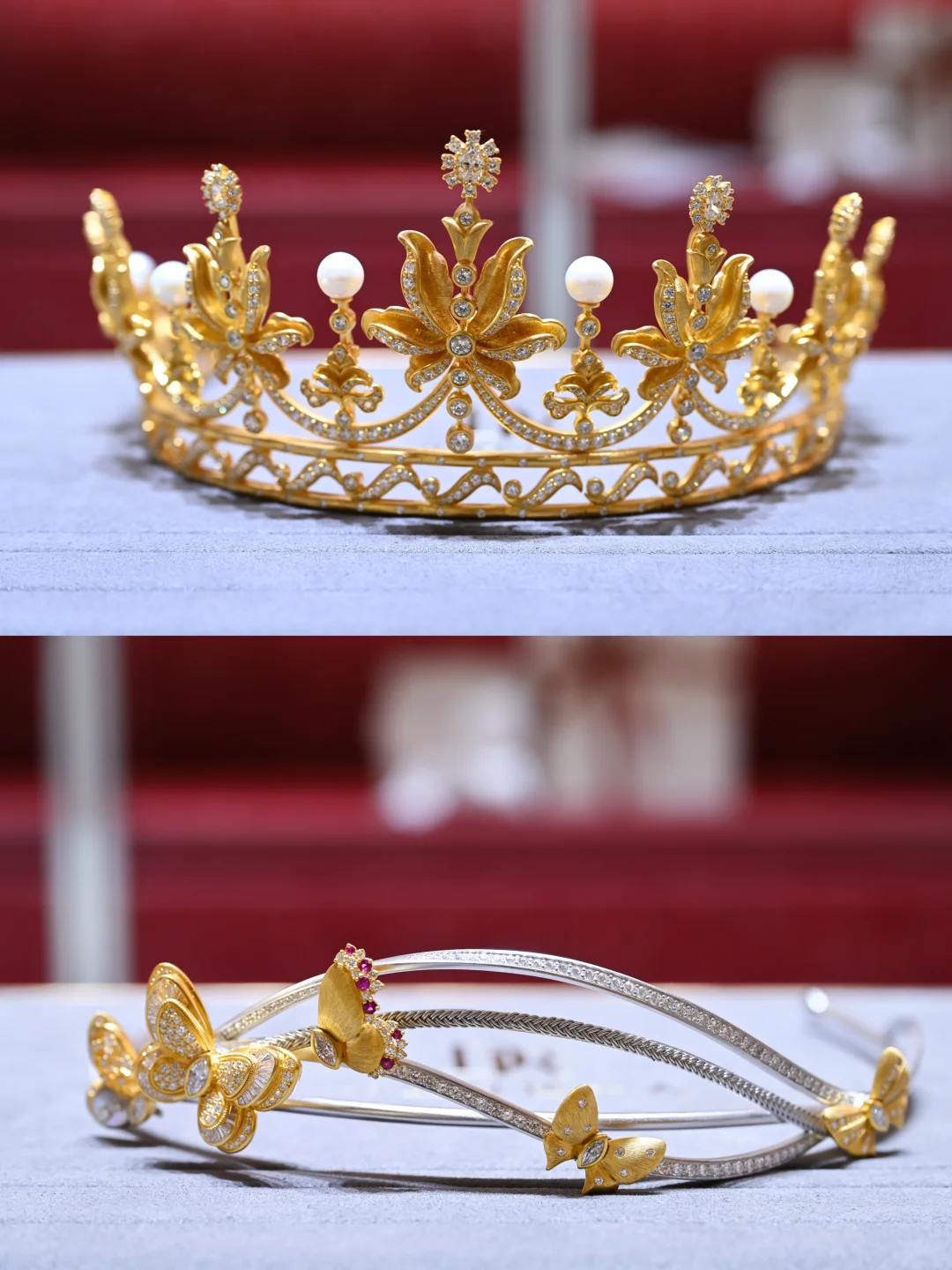 百年好合和蝶舞流光简直长在了我的审美上,更绝的是它“一冠多戴”,看着工作人员像变魔术一样,将婚礼感的皇冠化作日常能戴的高珠饰品,项链,手镯,耳坠,胸针~妈呀,简直惊呆了我。老公说这样我平常也能把这份浪漫戴在身上~