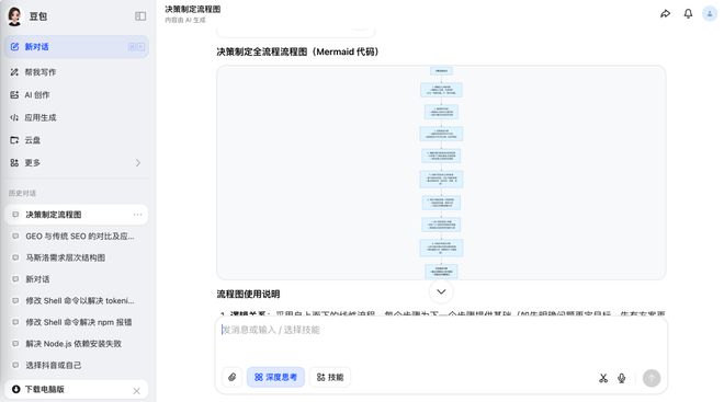 以豆包、Deepseek为代表的AI助手,它们现在都支持生成mermaid格式的流程图。