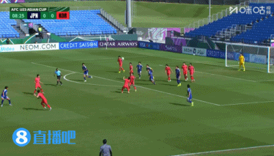 上半场补时2分钟,U23日本1-0韩国U23。