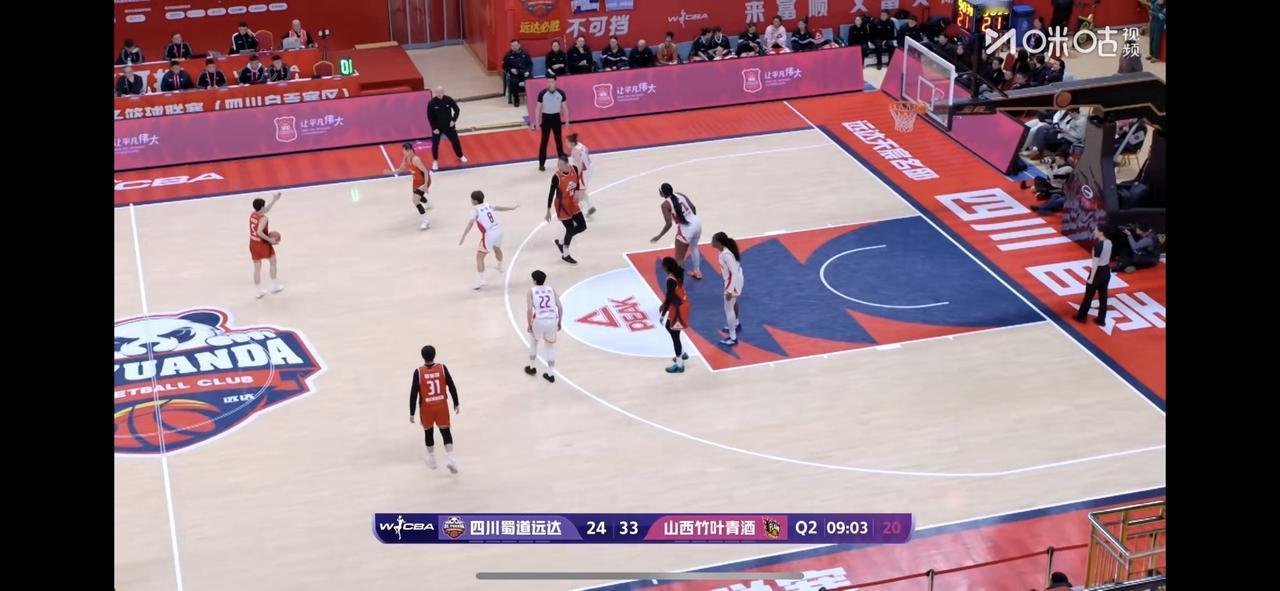 四川女篮暂时大分落后 第一节,被对方打了一节22:33,上半场结束43:53 有点像昨晚江苏女篮的比赛,防不住,攻不进,全队的整体命中率很低,第一节算被防住的,就是山西女篮内线大外援布朗 可是翟若云百分百的三分球命中率,投篮时非常的果决,以及小外援惠特尔也是命中率奇高 从双方出手次数来看,几乎没有差别,但是命中率相差很大。这个说明不仅仅是双方把握能力存在差异,更是双方防守的问题,强度和防守方式不一样,所以让各自球员出手的便利性是不一样的。 坎贝奇、王思雨等主要球员都不在状态 所以给人一种感觉,即缺乏拼劲,甚至看着一些懒散,这一点在坎贝奇身上尤为突出。 再一个就是三分球,这个是四川女篮本赛季最大的一个问题,三分球投不出来,面对强敌就是会很艰难很艰难,甚至可以说只有输球的命! 看下半场四川女篮能否调整好,不然就要被山西女篮双杀!