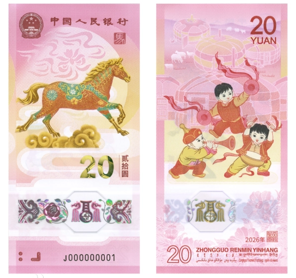 据了解,马年贺岁纪念钞面值20元,正面主景为马的造型图案、中华人民共和国国徽、篆书“马”字印章等元素。背面主景为儿童欢庆锣鼓图案,辅以蒙古包装饰图案等元素。纪念币面值10元,正面图案为“中国人民银行”“10元”字样,背面图案为中国传统剪纸艺术与装饰年画元素相结合的马形象。