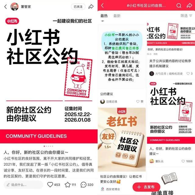 小红书社区提前征集用户的反馈,发起了话题征集活动#小红书社区公约由我提议