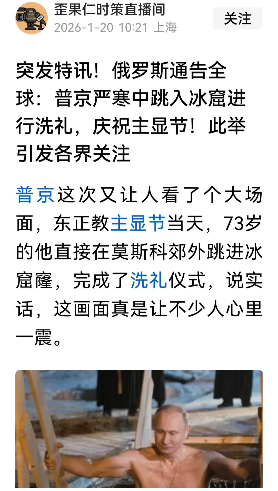 有人以为,在零下十几甚至二十几度,普京跳进冰窟窿,是硬汉的表现。其实不然,众所周知,水是零度结冰,冰层以下的水是高于零度的,与周围零下十几二十几的温度相比,跳到冰窟窿是非常暖和的,相当于洗温泉,在东北冬泳的人都知道这一点。