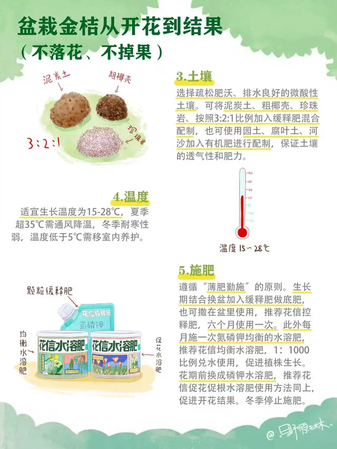 遵循“薄肥勤施”的原则。生长期结合换盆加入缓释肥做底肥,也可撒在盆里使用,推荐花信控释肥,六个月使用一次。此外每月施一次氮磷钾均衡的水溶肥,推荐花信均衡水溶肥,1:1000比例兑水使用,促进植株生长。花期前换成磷钾水溶肥,推荐花信促花促根水溶肥使用方法同上,促进开花结果。冬季停止施肥。6.修剪
