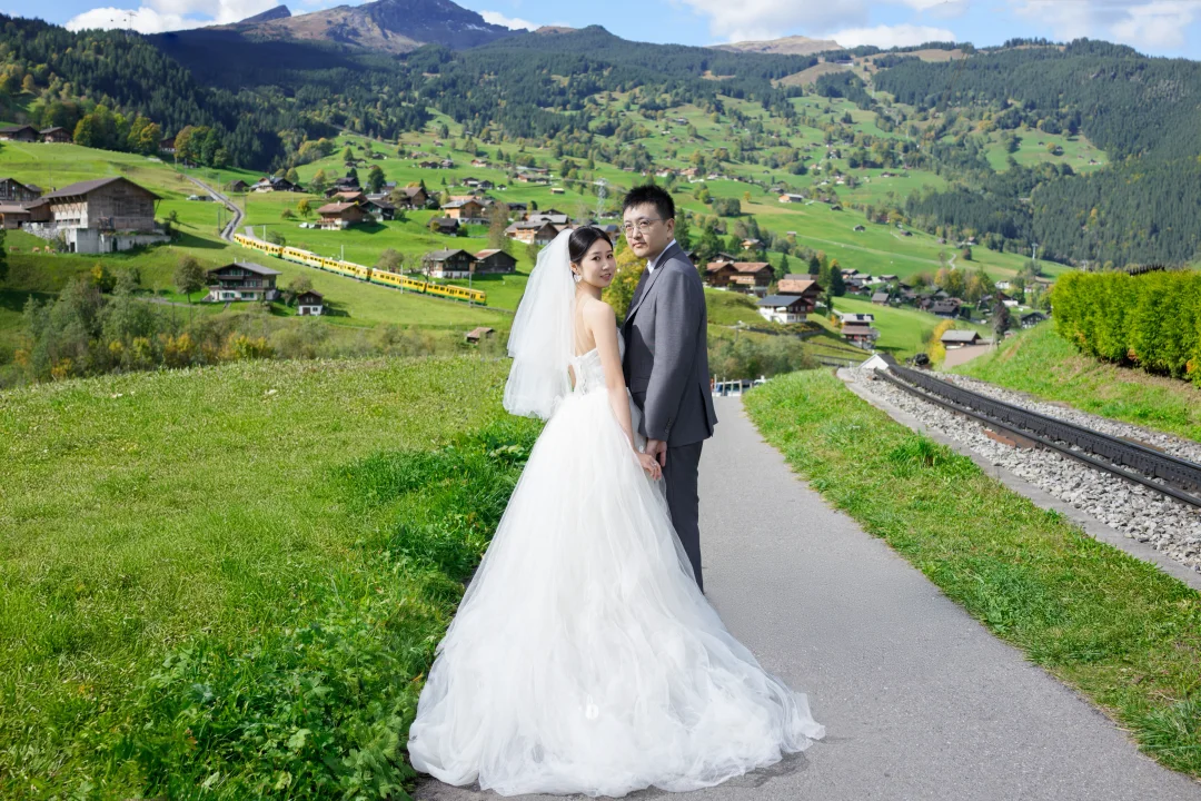 今年N个漂亮时刻 瑞士摄影师雨遥 瑞士旅拍婚纱 格林瓦德梦幻山坡 带着婚纱去旅行 龙疆小镇 瑞士格林德瓦