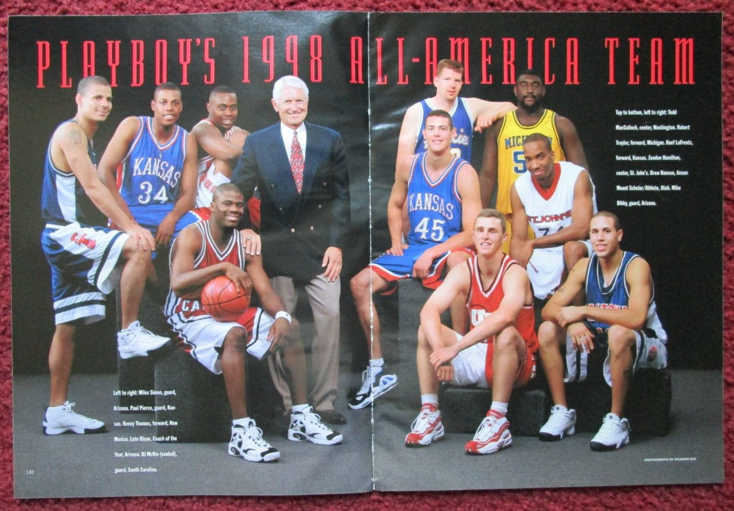 Mike Bibby 大学时候的一个评选1998 PLAYBOY All-American College Basketball Team 毕比上脚Jumpman Pro 还和自己亚利桑那球衣满搭配的照片里还有皮尔斯 拉夫伦茨 拖拉机Robert Traylor R.I.P 前面穿converse的BJ Mckie穿的几年前的款式 惨点鞋控的日常 老照片中的球员和球鞋