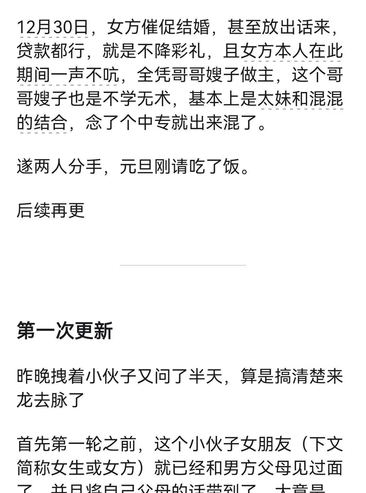 那些因彩礼而谈崩的男女们,后来怎么样了?今天看到失口乎《彩礼厚谈》那些因彩礼谈崩