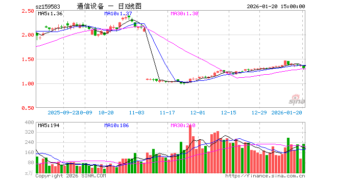 1月20日,通信设备ETF(159583)跌3.76%,成交额3.00亿元。当日份额增加7800.00万份,最新份额为11.83亿份,近20个交易日份额增加5000.00万份。最新资产净值计算值为15.41亿元。