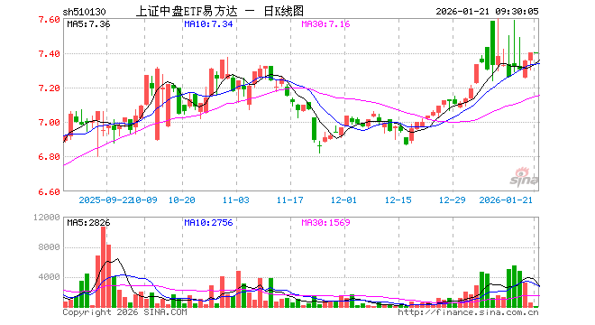 1月21日,上证中盘ETF易方达(510130)开盘涨0.03%,报7.402元。上证中盘ETF易方达(510130)重仓股方面,工业富联开盘跌1.61%,中科曙光跌0.63%,江苏银行跌0.10%,兆易创新涨1.03%,浦发银行涨0.00%,北方稀土跌0.93%,福耀玻璃涨0.26%,华泰证券跌0.30%,民生银行跌0.26%,华友钴业跌0.72%。