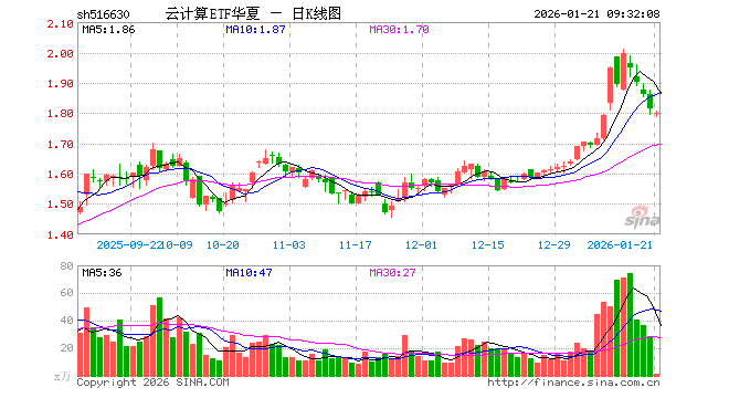 1月21日,云计算ETF华夏(516630)开盘跌0.94%,报1.795元。云计算ETF华夏(516630)重仓股方面,中际旭创开盘涨0.21%,新易盛涨0.12%,科大讯飞跌1.02%,中科曙光跌0.63%,浪潮信息跌0.71%,金山办公跌0.30%,紫光股份跌1.94%,恒生电子跌0.62%,润和软件跌0.83%,拓维信息跌0.78%。