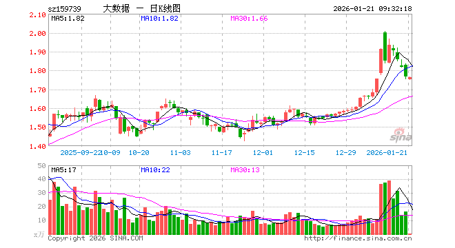 1月21日,云计算ETF鹏华(159739)开盘跌0.90%,报1.752元。云计算ETF鹏华(159739)重仓股方面,中际旭创开盘涨0.21%,新易盛涨0.12%,科大讯飞跌1.02%,中科曙光跌0.63%,浪潮信息跌0.71%,金山办公跌0.30%,紫光股份跌1.94%,恒生电子跌0.62%,润和软件跌0.83%,拓维信息跌0.78%。