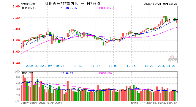 科创成长ETF易方达(588020)业绩比较基准为上证科创板成长指数收益率,管理人为易方达基金管理有限公司,基金经理为庞亚平,成立(2023-08-23)以来回报为112.79%,近一个月回报为12.47%。