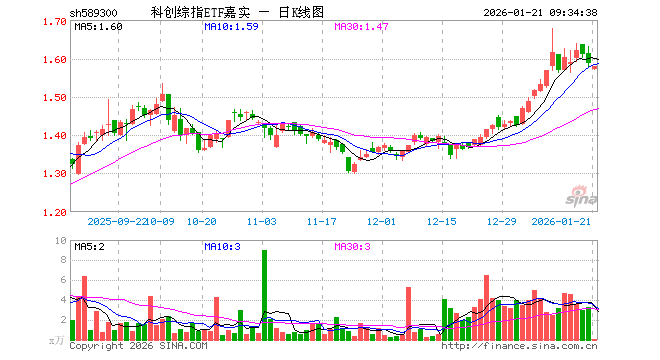 科创综指ETF嘉实(589300)业绩比较基准为上证科创板综合指数收益率,管理人为嘉实基金管理有限公司,基金经理为尚可,成立(2025-04-09)以来回报为58.28%,近一个月回报为15.80%。