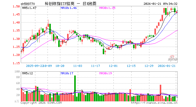 1月21日,科创综指ETF招商(589770)开盘跌0.41%,报1.455元。科创综指ETF招商(589770)重仓股方面,海光信息开盘涨3.65%,寒武纪跌0.57%,中芯国际跌1.02%,中微公司跌0.09%,澜起科技涨0.70%,百利天恒涨0.33%,金山办公跌0.30%,联影医疗涨0.17%,影石创新跌0.14%,传音控股跌0.05%。