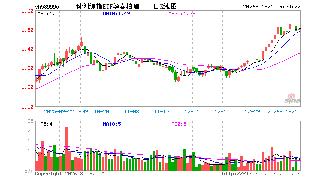 科创综指ETF华泰柏瑞(589990)业绩比较基准为上证科创板综合指数收益率,管理人为华泰柏瑞基金管理有限公司,基金经理为谭弘翔,成立(2025-02-26)以来回报为49.62%,近一个月回报为16.69%。