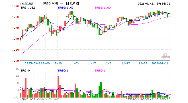 1月21日,创业板50ETF华泰柏瑞(159383)开盘涨0.63%,报1.604元。创业板50ETF华泰柏瑞(159383)重仓股方面,宁德时代开盘涨0.67%,中际旭创涨0.21%,东方财富跌0.04%,新易盛涨0.12%,阳光电源涨0.06%,胜宏科技跌0.24%,汇川技术跌0.29%,迈瑞医疗跌0.05%,亿纬锂能跌0.50%,同花顺涨1.44%。