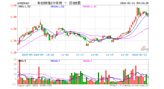 科创综指ETF东财(589060)业绩比较基准为上证科创板综合价格指数收益率,管理人为东财基金管理有限公司,基金经理为吴逸,成立(2025-03-19)以来回报为51.66%,近一个月回报为15.94%。