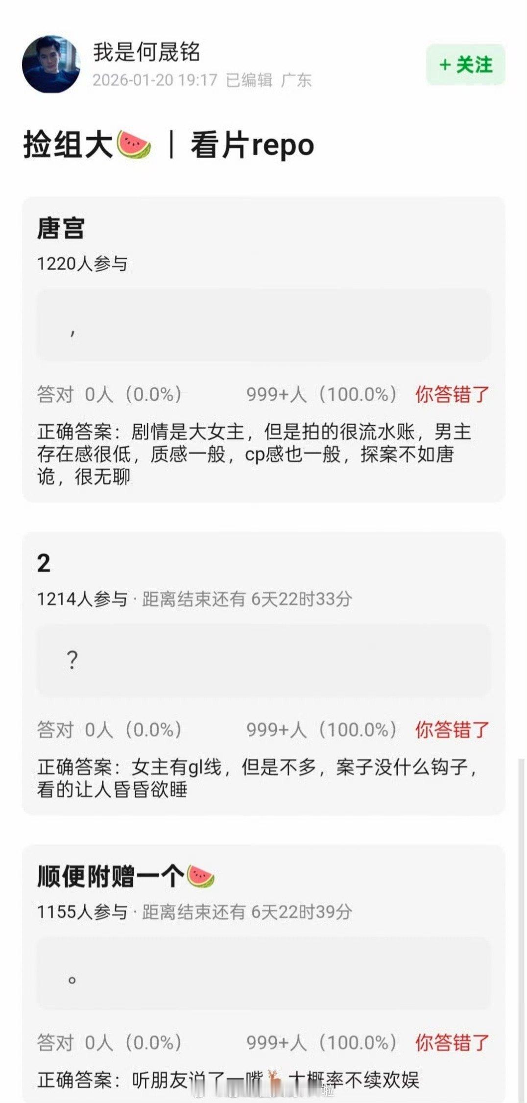 唐宫奇案剧本白鹿、王星越饿新剧《唐宫奇案》剧本repo来了,开始为白鹿的这部大女主剧担心了啊!据说这部剧的剧情是大女主,但是男主王星越的存在感很低,俩人的cp感一般,剧情无聊。远不如《唐朝诡实录》,白鹿选剧本的眼光咋了嘛!白鹿大女主剧唐宫奇案repo