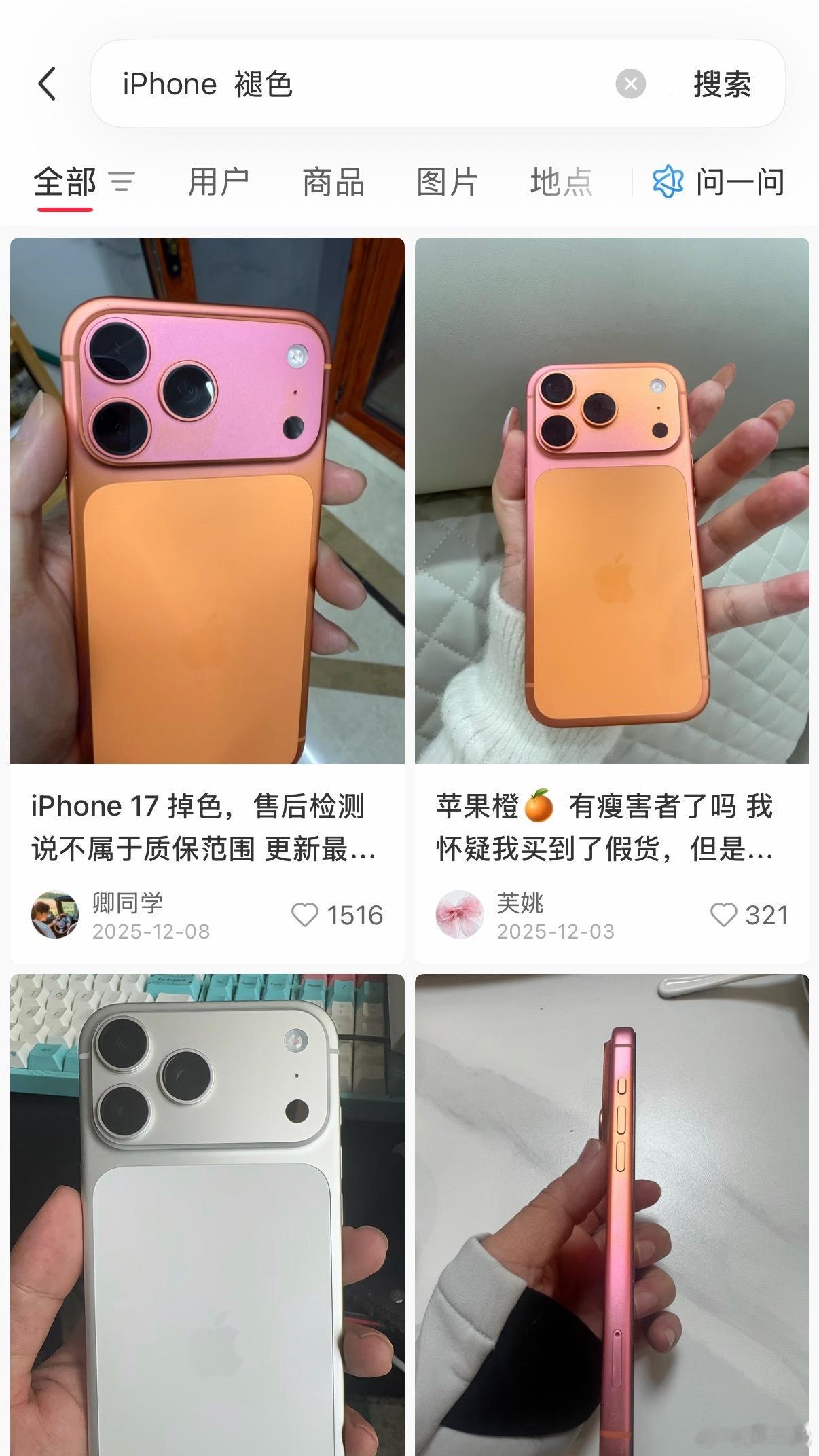 实测iPhone17Pro褪色情况我在网上搜了搜,发现好多人的橙色iPhone