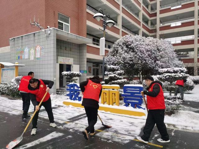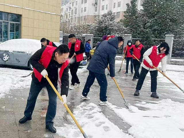 严寒挡不住热忱,风雪见真情。各校园内,学校领导、党员同志冲锋在前,广大教职工积极响应。寒风刺骨,却吹不散众人心头的团结之火;积雪厚重,却压不垮肩头的担当之志。铁锹与扫帚挥舞声中,汗水悄然凝结,协作的身影成了雪中最暖的风景。一条条被积雪覆盖的主干道、一层层台阶,在大家的共同努力下,逐渐恢复本色,化作平坦洁净的“安全通道”,为即将返校的师生铺就了安心之路。