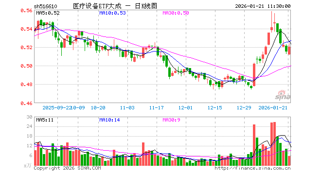 1月21日,截止午间收盘,医疗设备ETF大成(516610)涨0.97%,报0.520元,成交额294.80万元。医疗设备ETF大成(516610)重仓股方面,迈瑞医疗截止午盘跌0.20%,联影医疗涨0.51%,爱尔眼科跌0.62%,爱美客跌0.50%,惠泰医疗跌1.90%,新产业跌0.19%,鱼跃医疗涨2.60%,乐普医疗涨0.80%,福瑞股份跌0.61%,英科医疗涨2.23%。