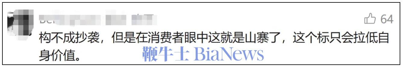 有网友认为,这虽构不成抄袭,但在消费者眼里就是山寨品牌,这种标识只会拉低品牌的自身价值。
