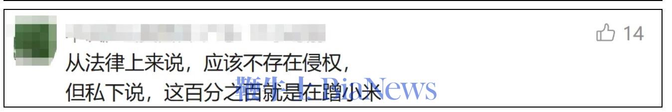 也有网友从法律角度分析,此举不存在侵权行为,但百分之百是在蹭小米热度。
