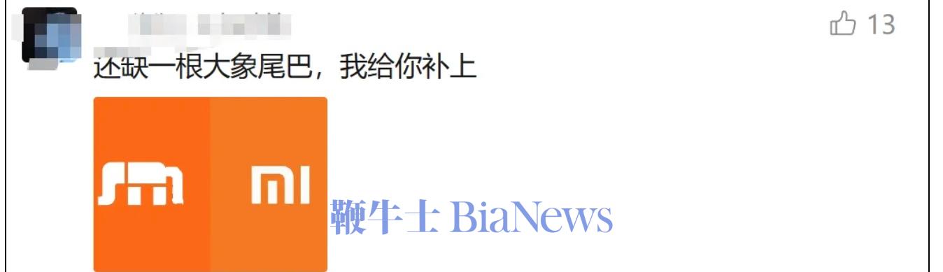 更有网友直接晒出了“大象标”和小米logo的对比图,并进行“二次创作”,给“大象标”补上了缺失的尾巴。