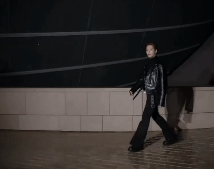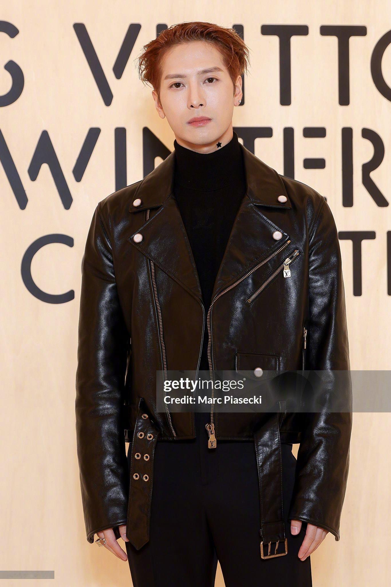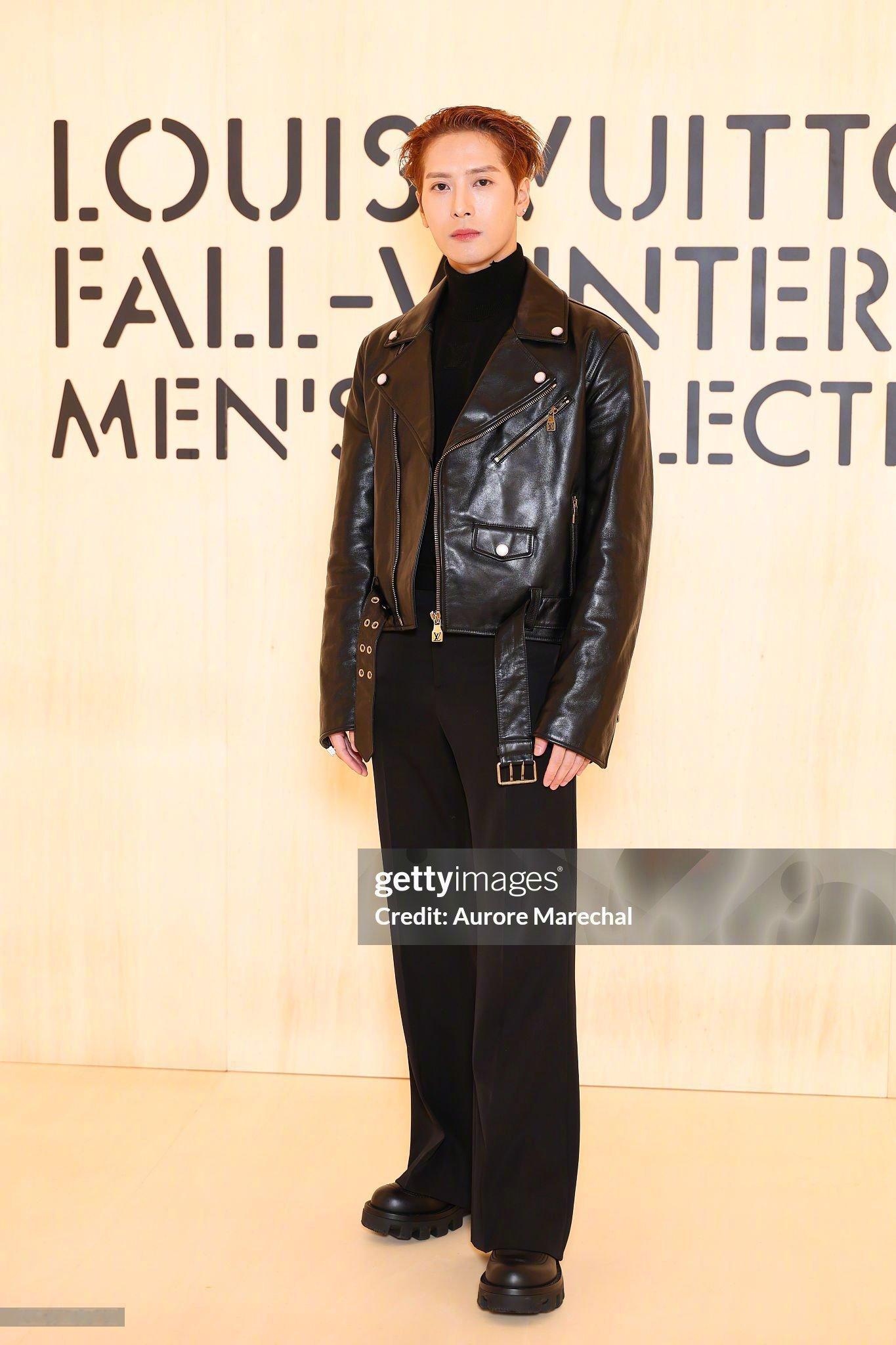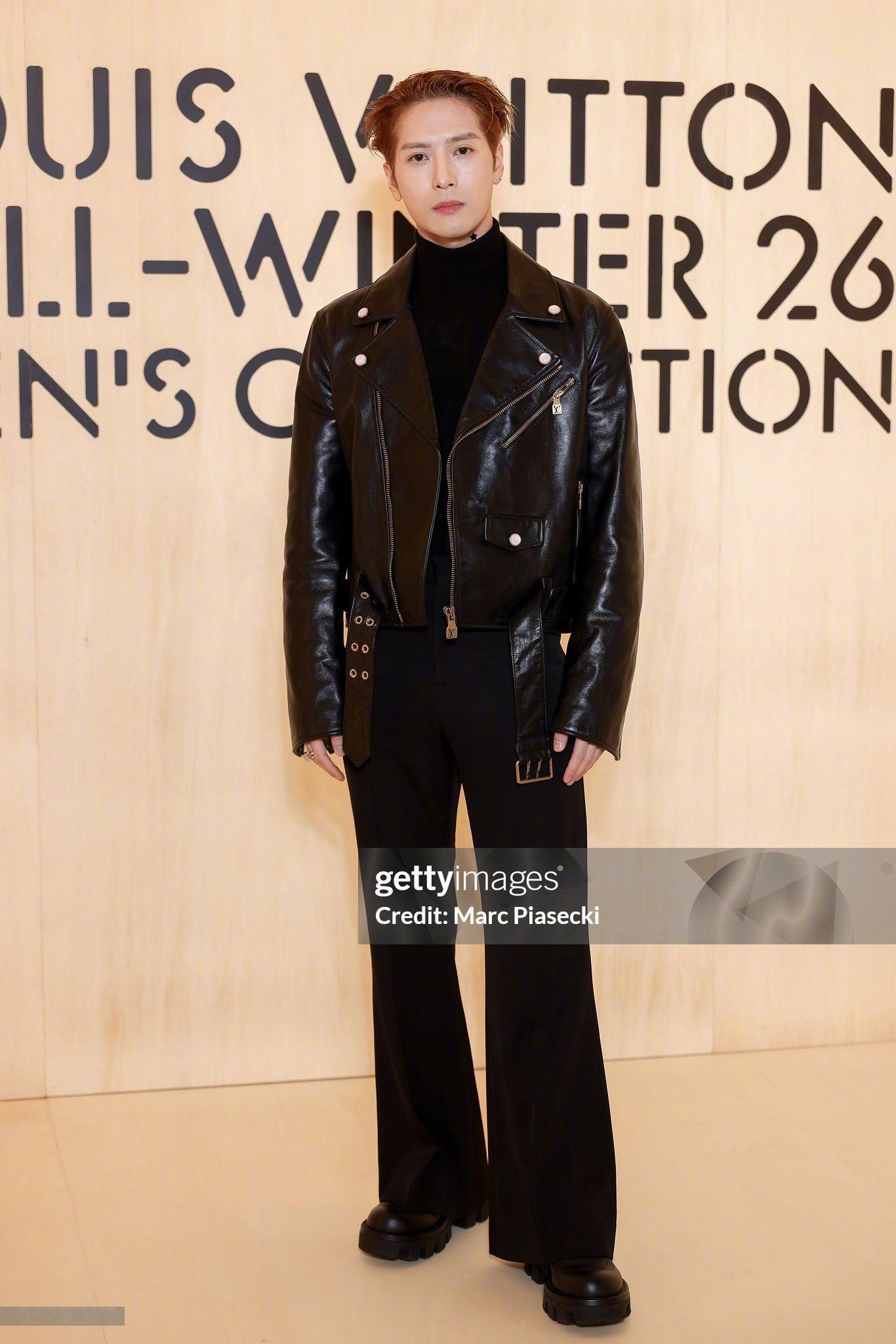 王嘉尔 亮相 LV大秀 现场G社生图,利落酷帅的机车皮衣造型,一派松弛随性的状态