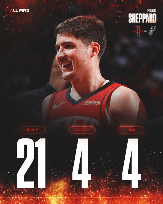 赛后,火箭官方发布谢泼德数据海报,并配文道:“电话响起,谢泼德接听了。”
