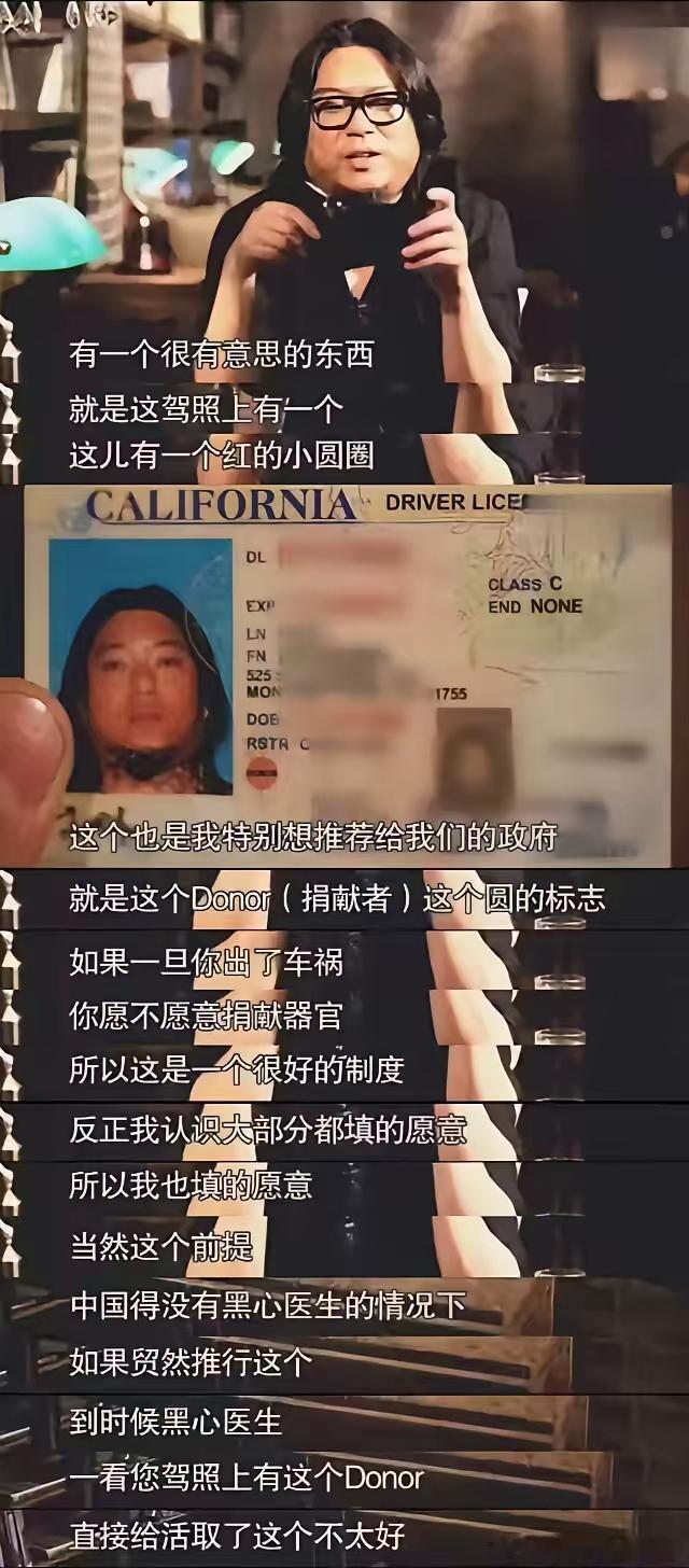 美国驾照上的DONOR标志,以前高某某很认可。 但牢A在说这个标志时却让人不寒而栗! 两个人的说法完全不一样。 驾照上有这个标志,表示司机出事故死亡后愿意捐献器官,不需要家属的同意医院就可以直接开刀拿走! 这种情况最害怕遇到黑医生,出事故的司机只是昏迷或是重伤,美国的黑医生为了利益却可以下黑手让他闭眼,从而获得他的器官。 没人敢保证美国没有给医生。捐献器官给需要的人是很伟大的一件事情,可最害怕被资本掌控,变成黑色产业。 据美国Volza数据,美国在人体组织(HSN编码3001)出口领域排名第一,企业Medcure每年出售或出租约1万个身体部位,其中20%用于出口。 这么多人体器官怎么来的,怎么被企业拿去牟利, 是美国监管漏洞助推产业形成。 美国对捐献人体器官来源,销售缺乏严格监管,允许对人体器官的“加工”收取“合理费用”,使,驾照上的DONOR标志让人产生各种疑问。 我不认可高某某说的,美国是一个资本主义国家。要不是牢A爆料,很多事我们根本不知道!