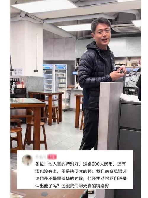 1月20日,台北几名学生在平价早餐店偶遇独自用餐的霍建华,小声议论时被他察觉。霍建华主动上前搭话,还默默用现金为学生们的早餐买单,总计200元新台币,让学生们受宠若惊。他当日穿休闲装无保镖陪同,老板娘还透露其是店内常客,待人十分谦和。霍建华 霍建华名场面