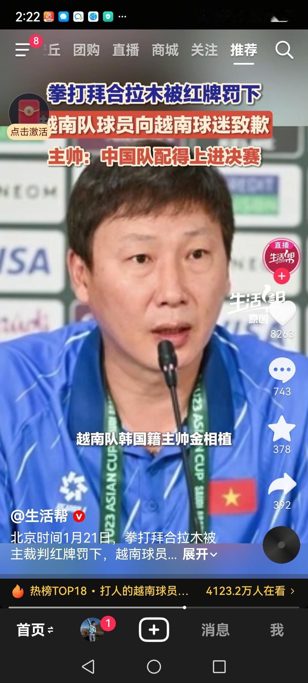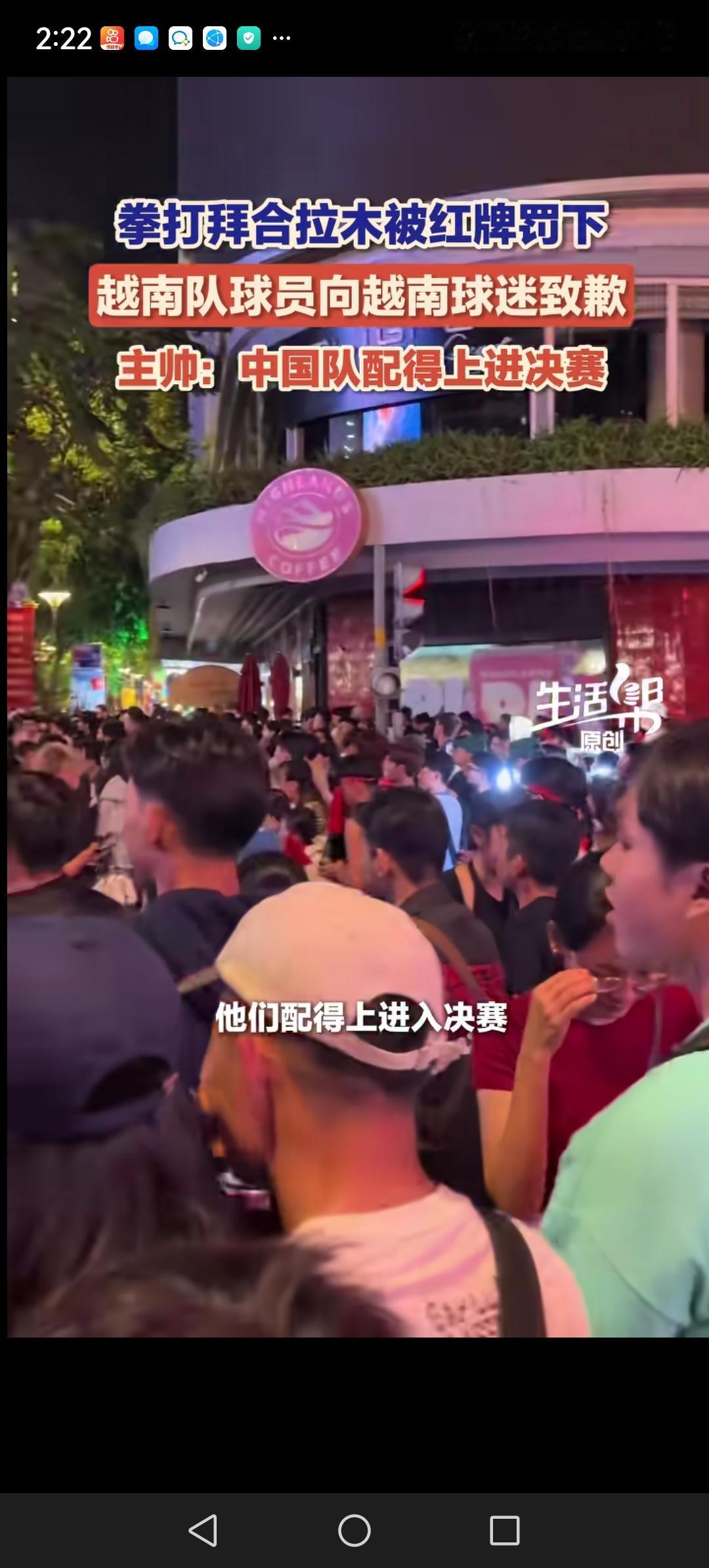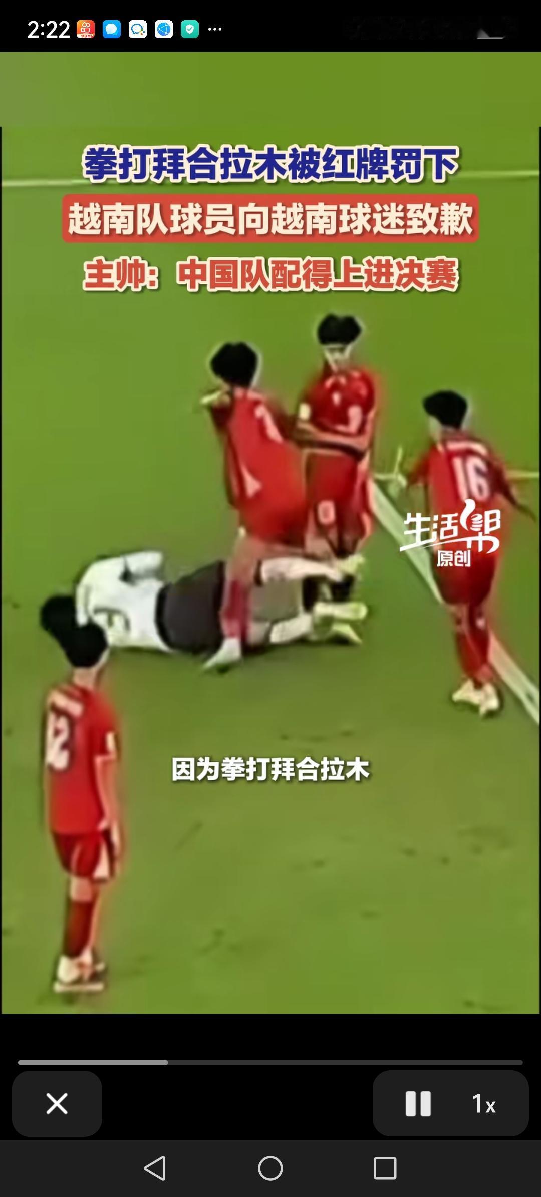 U23亚洲杯越南0:3不敌中国,未能闯进决赛。比赛中越南3号队员输急了眼,用脚狠踹拜合拉木,被裁判红牌罚出场外,越南真是输球又输人。 比赛之前越南观众对主队充满了胜利的希望,很多球迷聚集在广场前观看大屏幕的比赛,但越南球员糟糕的表现令球迷们大失所望。赛后越南教练也主动承认了队伍失败与自己的临场指挥有关,中国队大面积调整了首发,而自己没有采取相应的对策。 在恭喜中国队闯进决赛的同时,但也应该承认越南足球水平一直在不断进步,对我们已经构成了威胁。