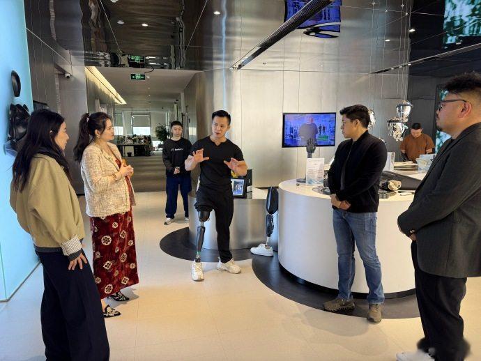 强脑科技创办人兼CEO韩璧丞博士、合伙人何熙昱锦女士与团队向霍启刚一行展示了非侵入式脑机接口与智能义肢技术,如何从实验室走向应用。“他们的核心产品智能仿生手与仿生腿,可以精准解读用户神经信号,让用户利用直觉去控制,帮助伤健人士进行抓握、行走,甚至跑步的动作。令人敬佩的是他们秉持“科技向善”的初心,为符合资格的伤健人士免费提供及安装智能仿生手。”