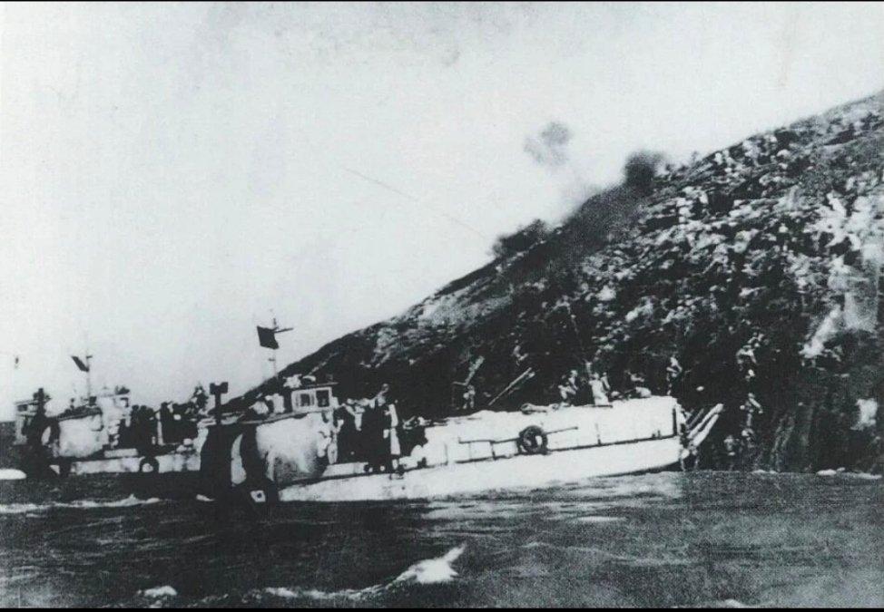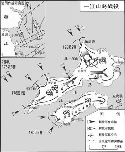 伪台蛙军纪念其一江山岛守军被解放军全歼71周年 1955年1月18日,解放军发动了我军军史上首次陆、海、空联合立体作战,于1月19日凌晨肃清一江山岛残敌,歼灭守军1000余人。1955年2月初,国民党军队在美军协助下裹挟1.4万名当地百姓撤离大陈岛,1955年2月13日,我军不战而得大陈岛。