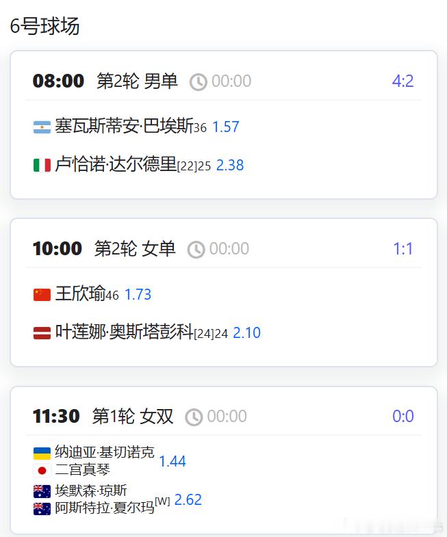 澳网2026 正赛第2轮第2天中国球员赛程中国3位球员先后登场预估开赛时间 11:00 王欣瑜 vs 奥斯特彭科预估开赛时间 12:00 商竣程 vs 范德尚舒尔普预估开赛时间 13:00 吴易昺 vs 斯皮齐里 王欣瑜晋级澳网女单次轮 商竣程吴易昺晋级澳网次轮