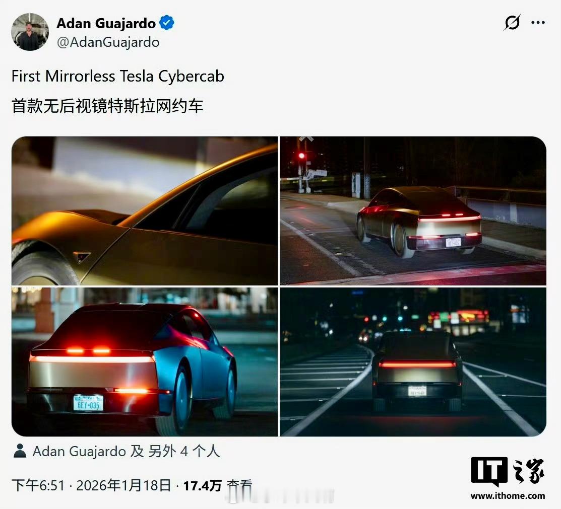 特斯拉那个没方向盘的无人驾驶出租车 Cybercab,最近在美国好几个地方被人拍到了。以前特斯拉一直坚持“只靠摄像头看路”,啥雨刷、喷水嘴都不加,全指望算法硬扛。尤其在冬天,泥巴、雪水一糊,镜头直接变“毛玻璃”。一旦看不清,连个踩刹车的人都没有,风险太大。现在好了,后摄像头自带喷水清洗,脏了能自己冲干净。这不是小改动,而是承认了:再牛的AI,也得先看得见才行。特斯拉Cybercab原型曝光