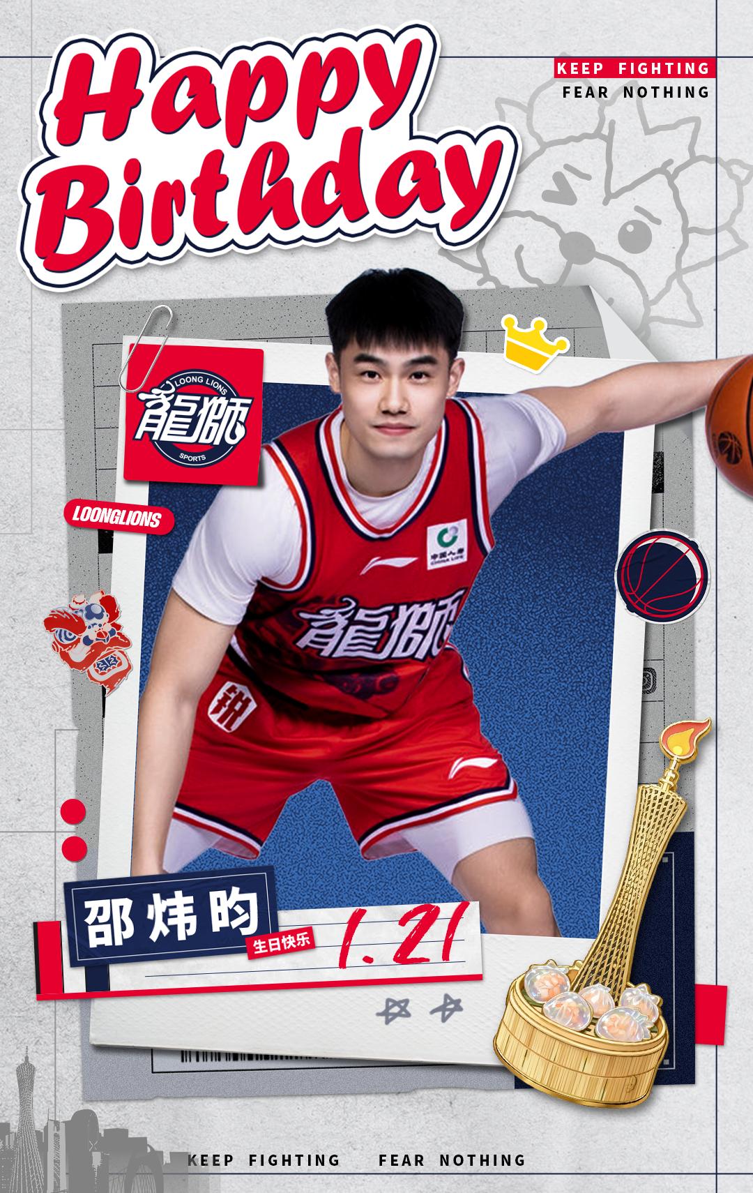 虎扑01月21日讯广州男篮官方社媒分享生日海报。