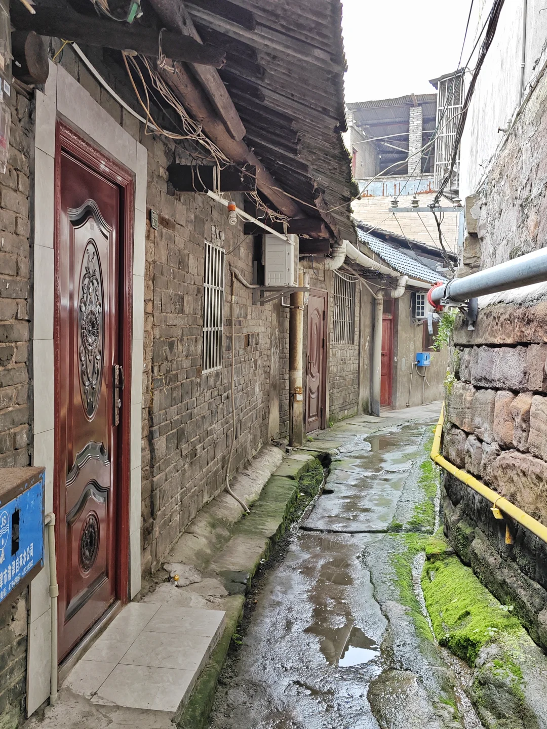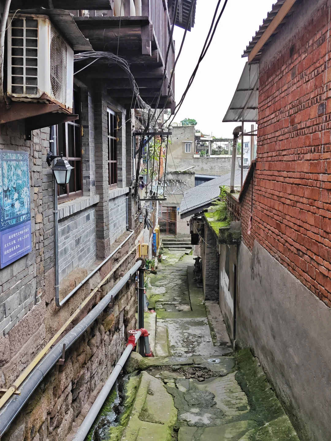 白沙镇老街有一片区域在一座山坡上,视野很开阔,爬上去可以看到下面奔流的长江和新建的街道。这里的街道保存都很完好,而且还住着人,卫生环境也符合要求,虽然大部分居民都是老人小孩,但生活感觉还是很不错。