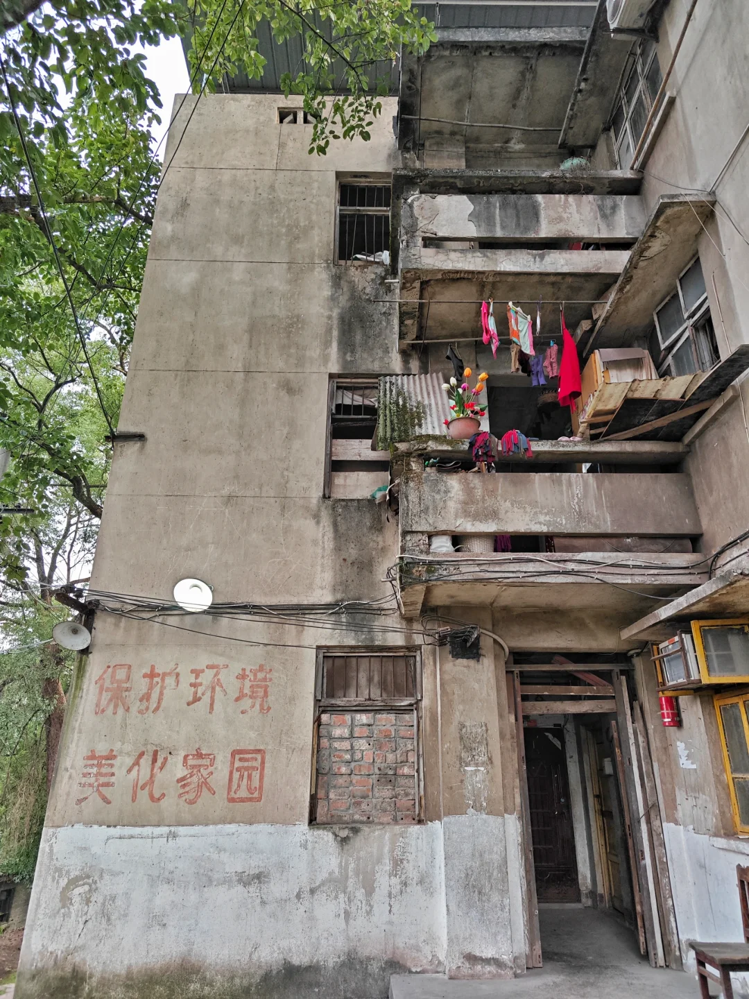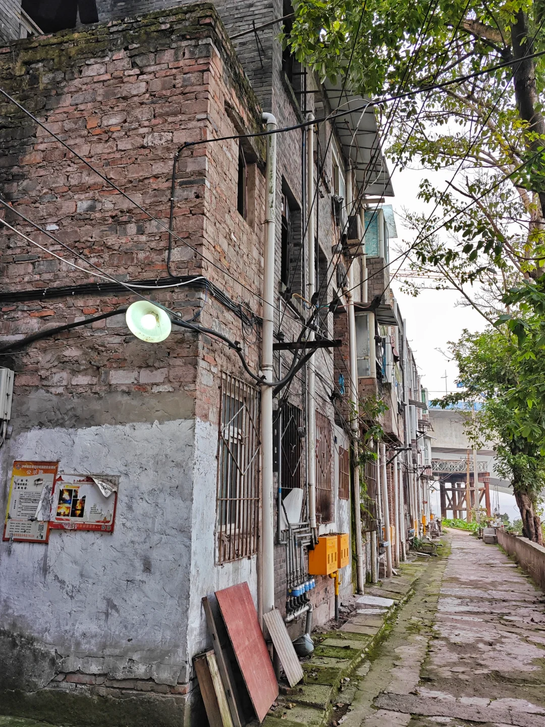 沙坪坝城区最边缘的磨床厂,因为礼嘉嘉陵江大桥的修建,终于从半个多世纪最偏僻遥远的城市边缘,开始融入都市生活圈。不过目前这里生活的,都是磨床厂老职工和家属。厂区已经搬到附近的北碚同兴镇,而且改制了,厂里对老家属区的管理也大不如前。据居民说这些旧房子等待拆迁,但又遥遥无期。有的职工是拿到产权的,有的因为进厂时间晚等原因,只有房屋使用权。上次说的家里漏水的老阿姨,就只有房屋使用权。她说厂里本来想让她们花二十多万把那个破单配产权买下来,但算下来要到5五六千一平方,这种地方这么破旧,简直划不来。所以就一直耗起,没人当冤大头。