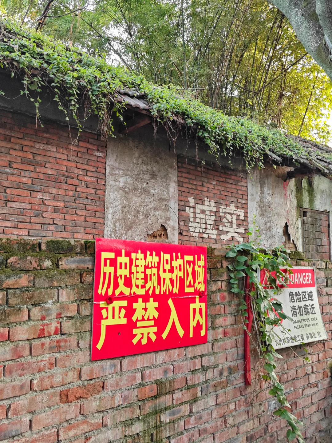 现在旁边的二砖厂和家属区全部拉上警戒线,里面那几栋文物例如王家大院,都挂上了各种牌子,但都不修缮,也许是上面没钱,或者不想修,就等它们腐烂垮掉了事。这个就不是我们所能揣测的了。反正现在整个大竹林凤溪沱老街,只有一两栋民房还有人住的痕迹,因为有狗在外面。其他地方没有人烟。不过偶尔有一些画画的年轻人到这里写生。其实,这里并不偏僻,离金海湾公园很近,附近也有新修小区,还有一路公交车能到老街附近一千米之处。